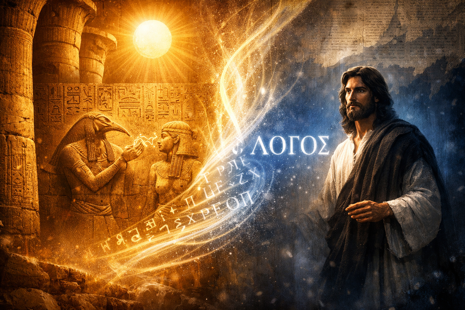This idea surfaces again in the Gospel of John: "In the beginning was the Word, and the Word was with God... All things were made by him." The Logos as creator through speech feels oddly close to the Egyptian view that naming and speaking aloud turns potential into being. Grenfell even pointed to Joseph's Egyptian name, Zaphnath-paaneah ("The god spoke, and he lives"), as carrying the same tradition of divine voice granting life.