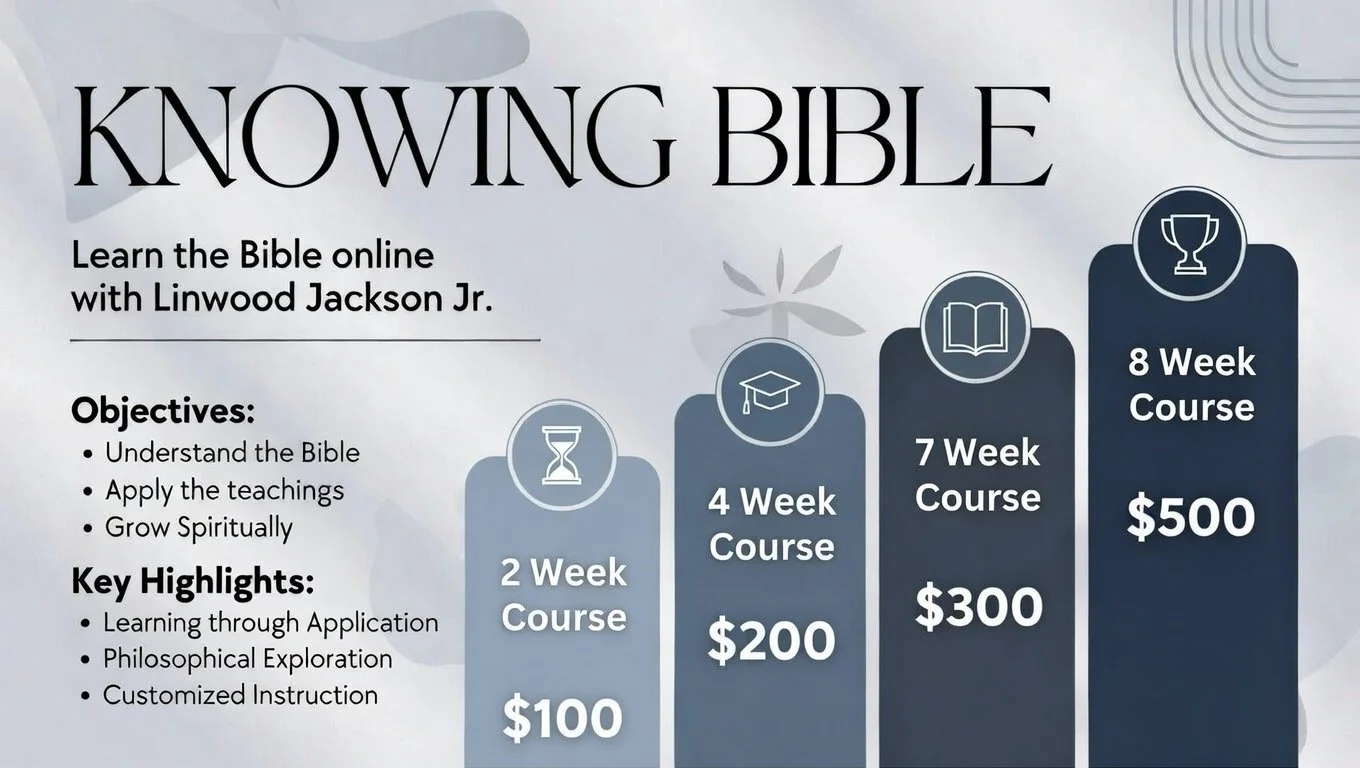Linwood Jackson Jr. is a seasoned educator on the Bible’s philosophy, offering profound insights and wisdom through his extensive knowledge and understanding of scripture. With a formal tone and meticulous attention to detail, he presents complex concepts in a clear and accessible manner, making what he teaches invaluable for individuals seeking a deeper understanding of the Bible’s philosophical principles.